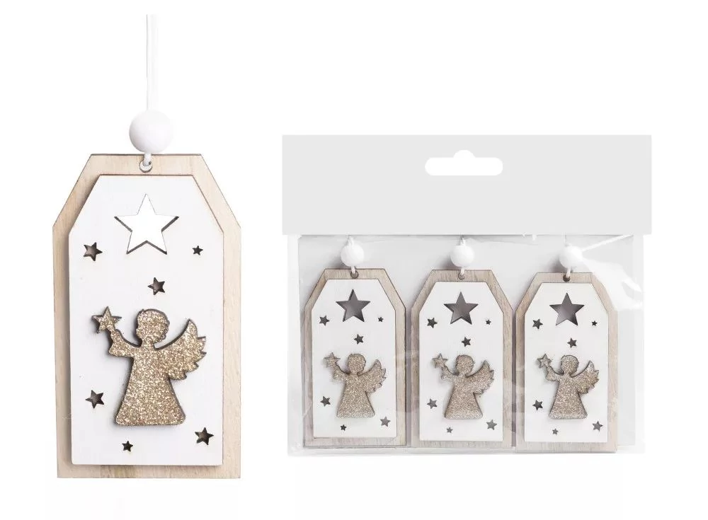 KAR. DEKOR akasztós fafigura glitteres angyal 7,5cm