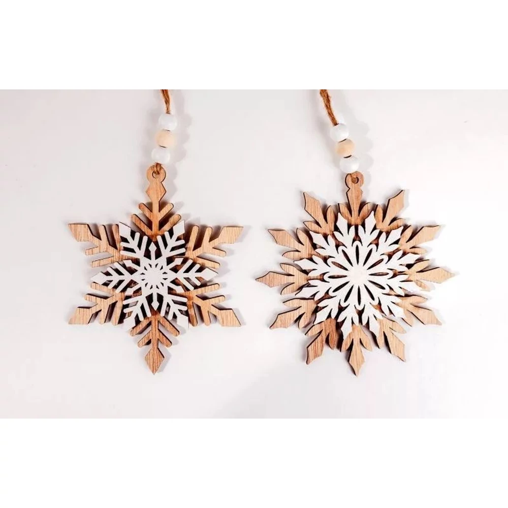 KAR. DEKOR akasztós fafigura hópehely natúr/fehér d11cm