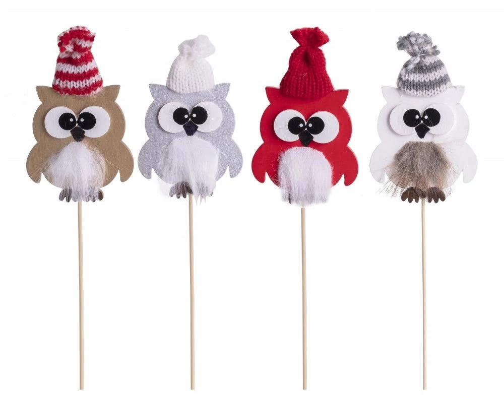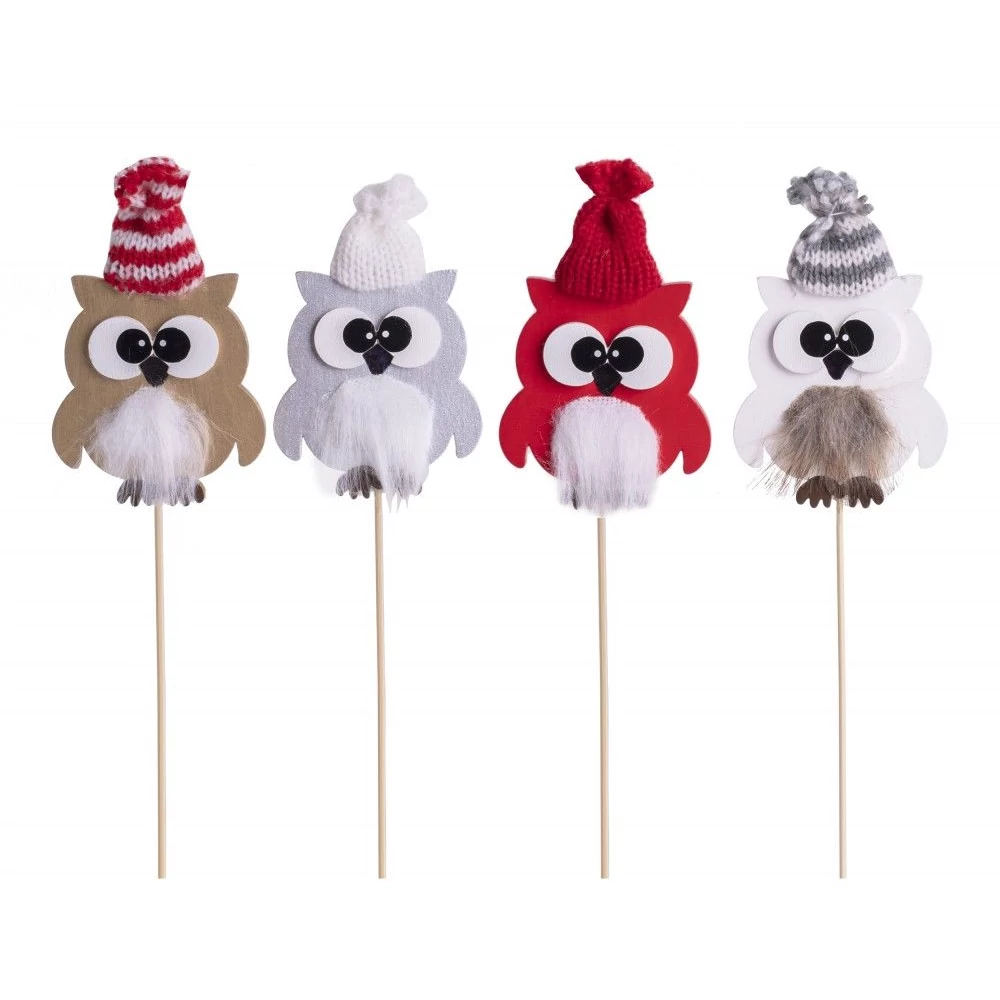 KARÁCSONYI DEKOR színes bagoly sapiban pálcán