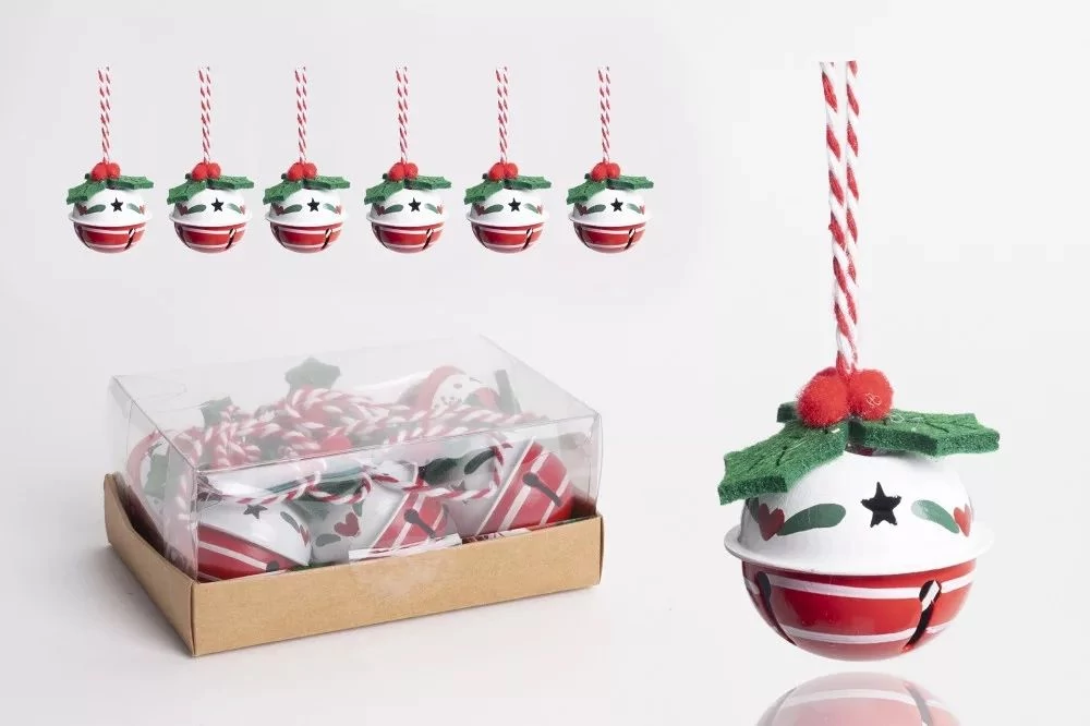 KAR. DEKOR csengő piros-fehér 4*4cm