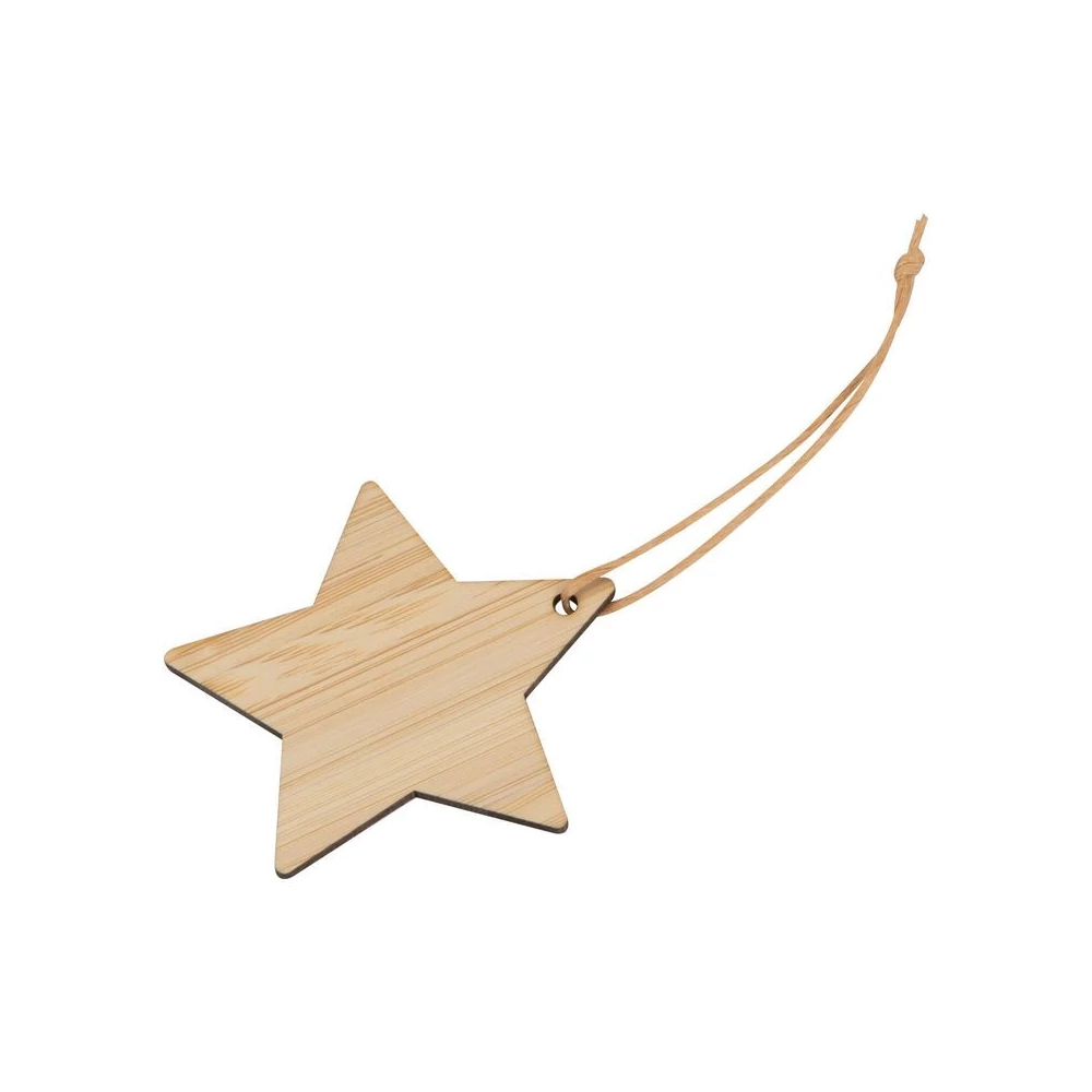 Bambuszból készült csillag alakú karácsonyi dísz, akasztóhurokkal, díszíthető.