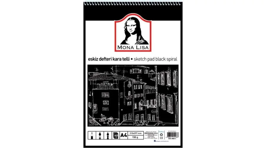 VÁZLATFÜZET A4 MONA LISA 40db fekete színű lap 150gr