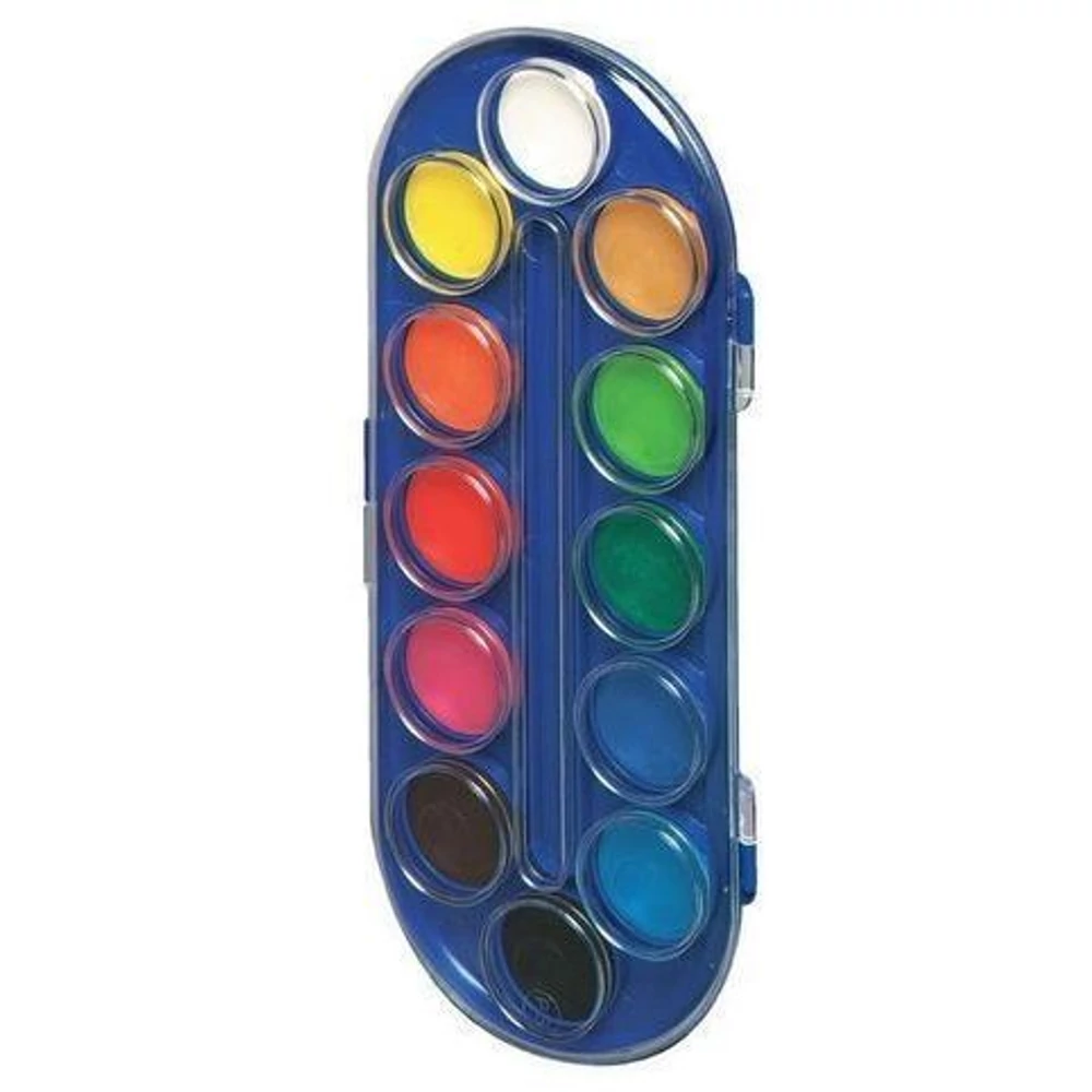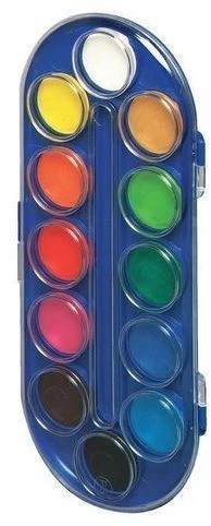 - 12 színű vízfesték-készlet, a vízfesték dobozának fedele festékkeverő palettaként is használható.