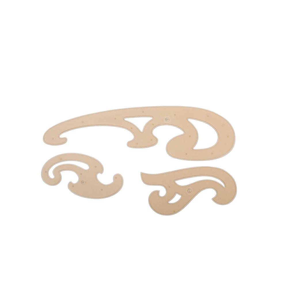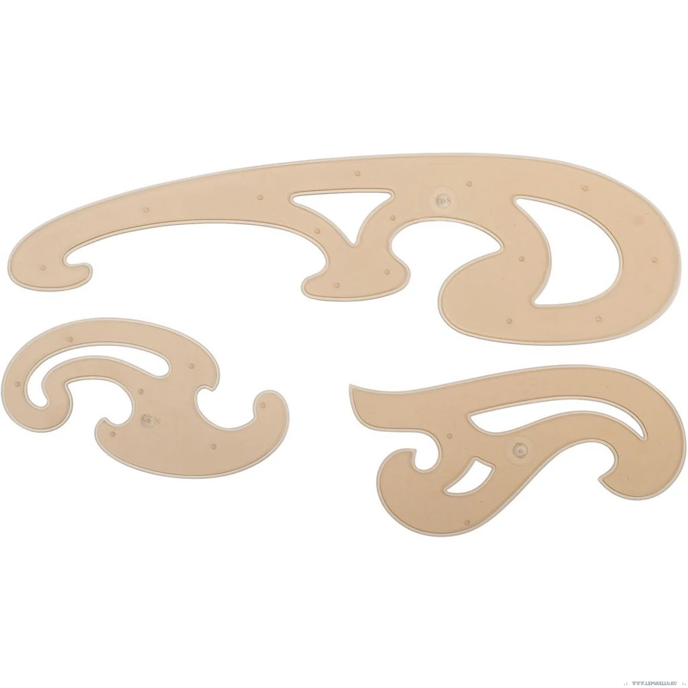 - Átlátszó, 2-es méretű, műanyag görbevonalzó készlet műszaki rajzokhoz.