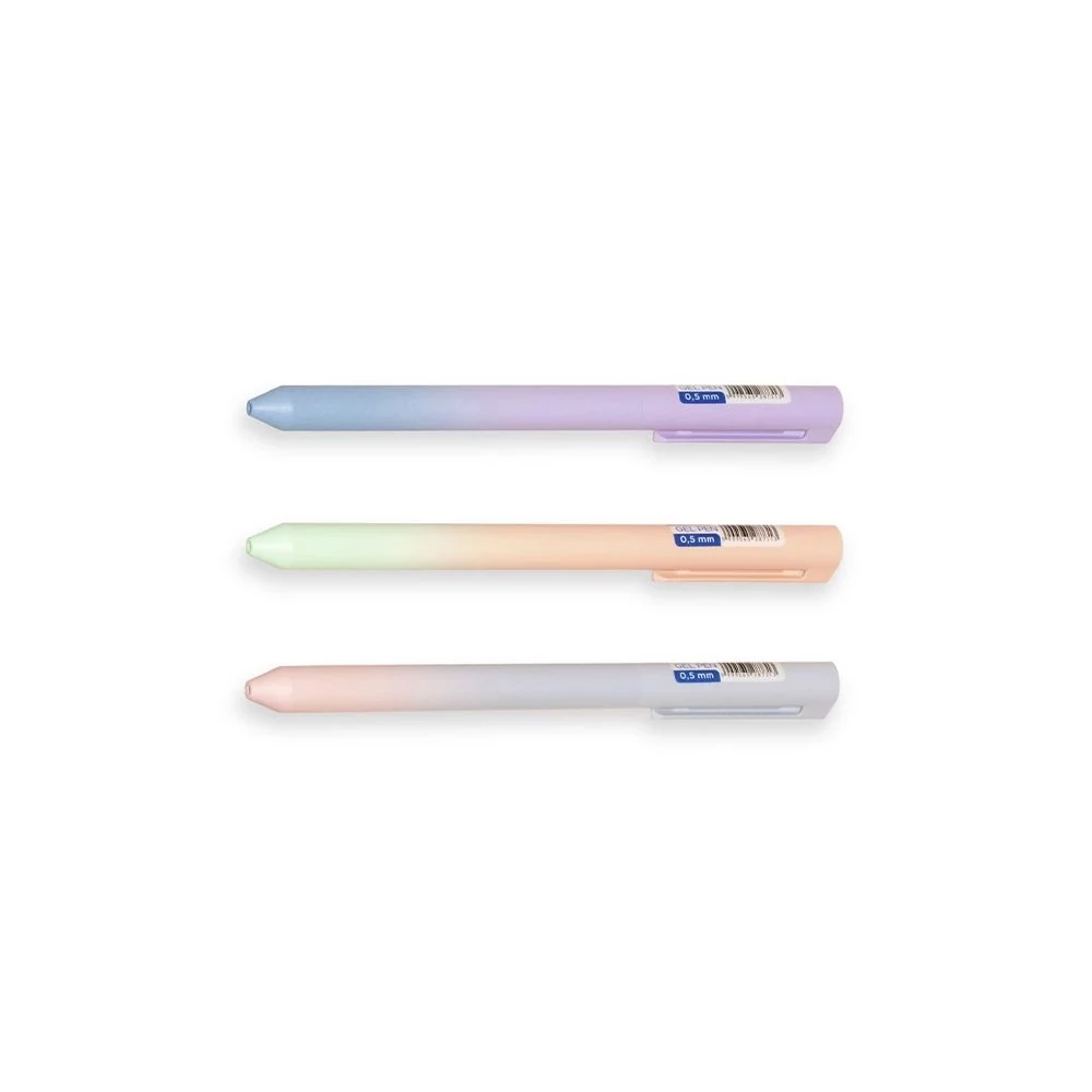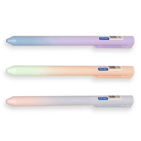 Irodai és általános felhasználásra ajánlott zselés toll. 0,5 mm írásvastagság; kék tintával ellátva, vegyes tolltest, színátmenetes.
