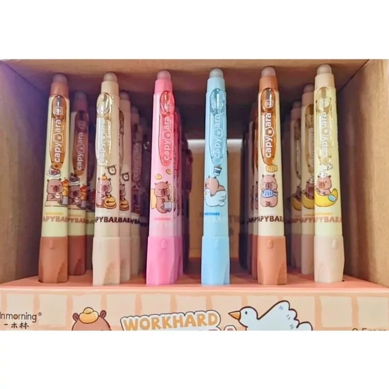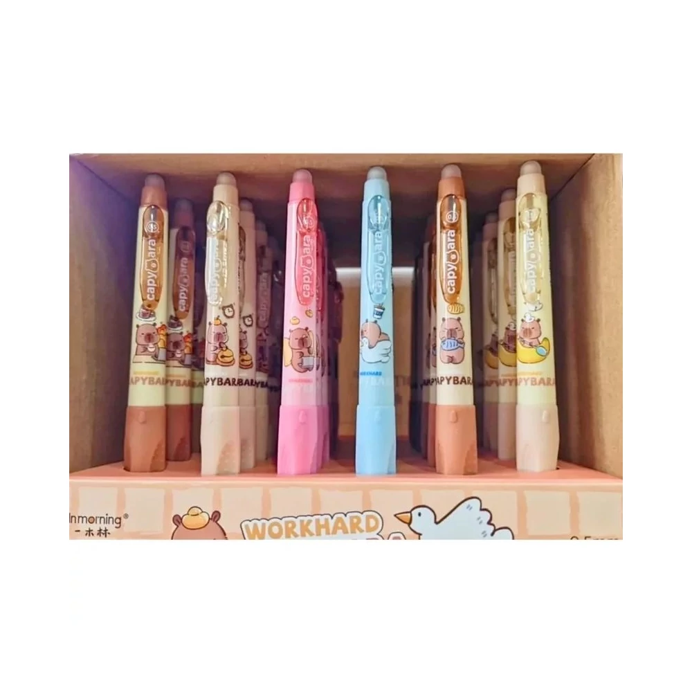 Capybara figurákkal díszített kék írásszínű zselés toll 0,5 mm-es vastagsággal.