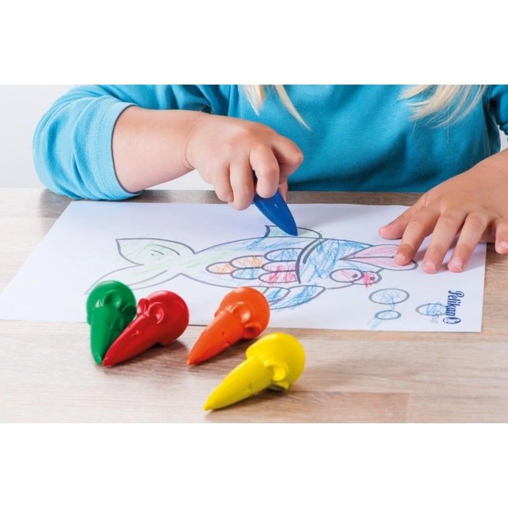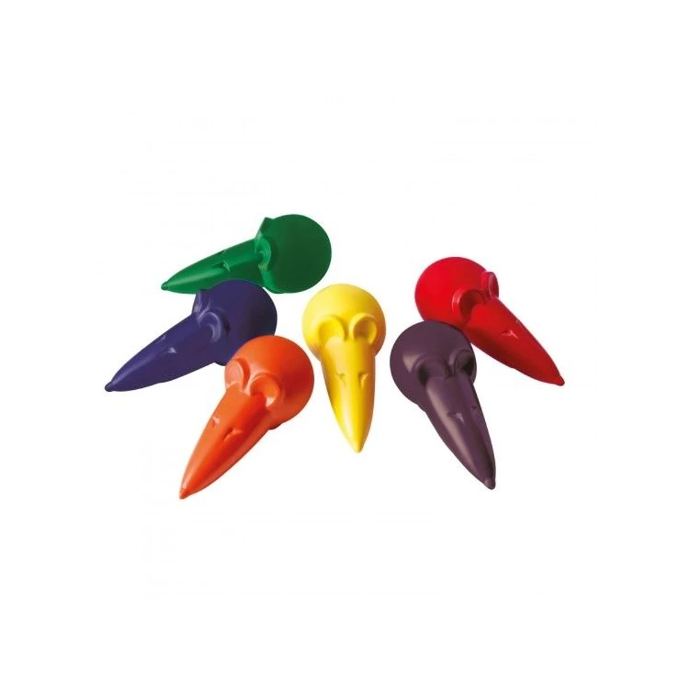 Zsírkréta készlet egér formával a finommotorikus készségek játékos fejlesztéséhez. Lágyan kenődik, nem színezi meg a kezet. A marokfogást támogatja, ami fontos az írás előkészítéséhez. 6 db zsírkréta/box.